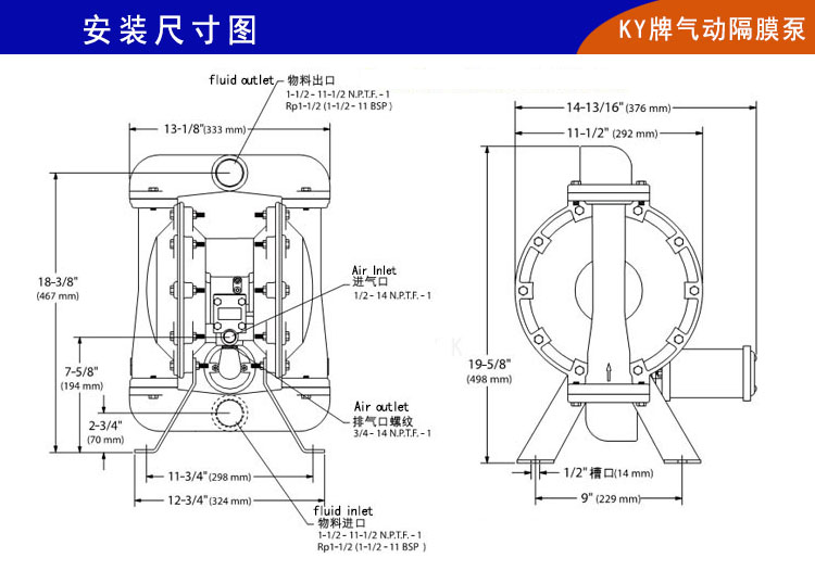 8. KY-40LP不銹鋼氣動隔膜泵具有自動批量泵送和計量功能;