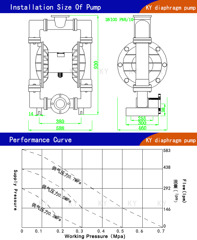 7、QBY-K100LC氣動隔膜泵不需灌引水,吸程高達7米,揚程達70米,出口壓力≧7bar