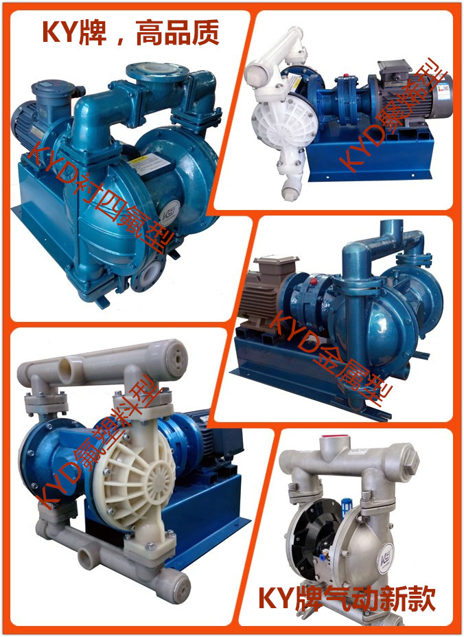 KYD電動隔膜泵是上海楷陽經(jīng)過數(shù)年的研發(fā)改進之高品質(zhì)產(chǎn)品,是具有國際高水平的電動隔膜泵。其材質(zhì)也取得了突破性的進展,上??柹a(chǎn)的KYD電動隔膜泵主要材質(zhì)有不銹鋼304電動隔膜泵、不銹鋼316L電動隔膜泵、鑄鋼電動隔膜泵、鋁合金電動隔膜泵、工程塑料(增強聚丙烯)電動隔膜泵、氟塑料(聚偏氟乙烯)電動隔膜泵和耐腐蝕抗壓性能超強的鋼襯氟電動隔膜泵等。既滿足了一些化工、醫(yī)藥、水處理等行業(yè)的耐腐蝕需求,也可以滿足一些廢水、污泥等粘稠含雜質(zhì)較多的介質(zhì)輸送。