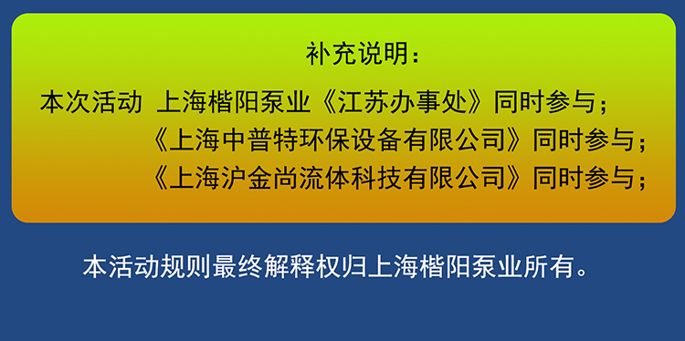 由于2024年上海楷陽泵業《第二期優惠活動》受到客戶強烈歡迎,現公司決定《第三期優惠活動》正常進行的同時,延續上期部分優惠;并且本次活動明碼標價,讓廣大客戶感受到我們的誠意;