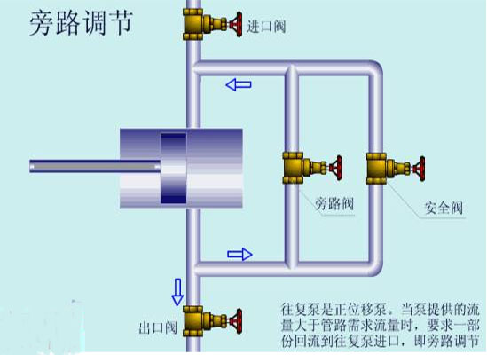 往復泵是正位移泵。當泵提供的流量大于管路需求流量時,要求一部分回流到往復泵進口,及旁路調節。