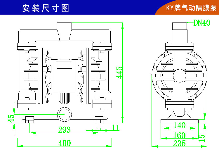 QBY-K40LL鋁合金氣動隔膜泵是第四代氣動隔膜泵,它以壓縮空氣為動力;左右兩個泵腔分別裝有彈性隔膜,因此又稱氣動雙隔膜泵。當壓縮氣體進入中間馬達體,馬達體會將壓縮氣體壓入隔膜泵其中一腔從而推動隔膜片運動擠壓液體流出,同時隔膜泵的另一腔因為被拉出而吸入液體。當隔膜片到達終點,配氣閥機構自動將壓縮空氣引入泵腔另一端,推動隔膜片朝相反方向運動,從而使雙隔膜片在泵體的兩個腔做往復運動,抽動液體流動。上海楷陽為方便客戶使用,第四代QBY-K40氣動隔膜泵已經研發了十余種材質生產:鑄鐵氣動雙隔膜泵、鋁合金氣動隔膜泵、不銹鋼304氣動雙隔膜泵、不銹鋼316L氣動雙隔膜泵、工程塑料(增強聚丙烯)氣動隔膜泵、氟塑料(PVDF)氣動隔膜泵和耐腐蝕抗壓性能超強的鋼襯氟氣動雙隔膜泵等。
