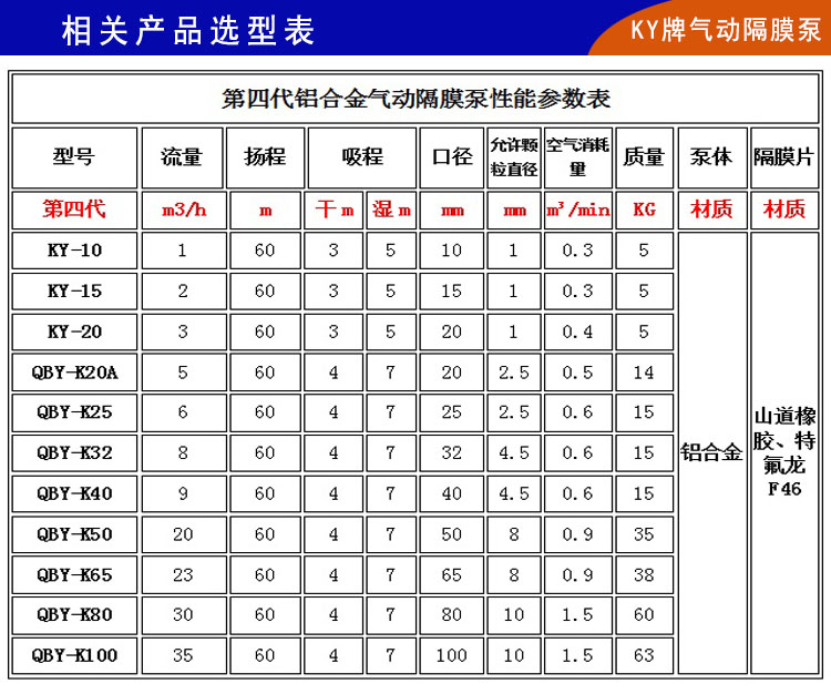 楷陽氣動(dòng)隔膜泵鑄件全部數(shù)控加工,主膜片采用特氟龍F(tuán)46和進(jìn)口特氟龍,副膜片使用山道橡膠和彈性橡膠,替代了常用的四氟和普通橡膠等劣質(zhì)易損件;密封球和密封座采用特氟龍F(tuán)4和山道橡膠;從而大大增加了氣動(dòng)隔膜泵易損件的使用壽命。QBY-K50LL鋁合金氣動(dòng)隔膜泵配氣裝置內(nèi)置一體化,做到了真正的不卡氣、無死機(jī),外觀更加美觀大方;空氣利用率大大提高,自吸功能和流量揚(yáng)程都有很大改善。