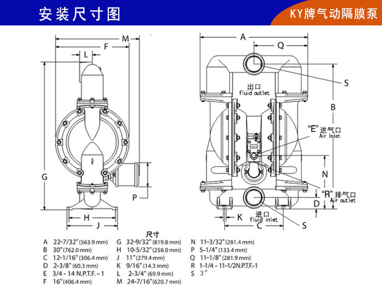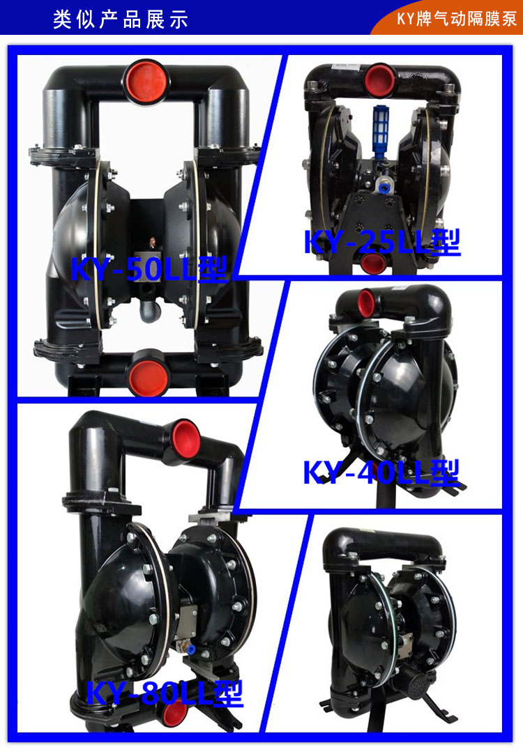 KY-80LL氣動雙隔膜泵原理是以壓縮空氣為動力,當壓縮氣體進入配氣閥,配氣閥會將壓縮氣體壓入氣動雙隔膜泵其中一腔從而推動隔膜片運動擠壓液體流出,然而泵的另一腔泵因為被拉出而吸入液體。當隔膜片到達終點,配氣閥機構自動將壓縮空氣引入泵腔另一端,推動隔膜片朝相反方向運動,從而使兩個兩個隔膜片在KY氣動隔膜泵的兩個腔做往復運動抽動液體流動。