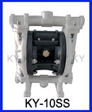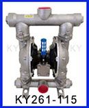 KY-10SZ新型鑄鐵氣動隔膜泵工作原理是以壓縮空氣為動力,當(dāng)壓縮氣體進(jìn)入配氣閥,配氣閥會將壓縮氣體壓入氣動泵其中一腔從而推動隔膜片運(yùn)動擠壓液體流出,然而泵的另一腔泵因為被拉出而吸入液體。當(dāng)隔膜片到達(dá)終點(diǎn),配氣閥機(jī)構(gòu)自動將壓縮空氣引入泵腔另一端,推動隔膜片朝相反方向運(yùn)動,從而使兩個兩個隔膜片在新型KY氣動泵的兩個腔做往復(fù)運(yùn)動抽動液體流動。
